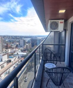 El edificio dispone de dos piletas, una en terraza y otra climatizada, SUM con asador y vista panorámica a las sierras, además de cochera cubierta.