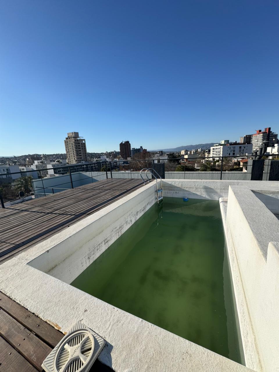 Pileta en terraza con asadores de uso común